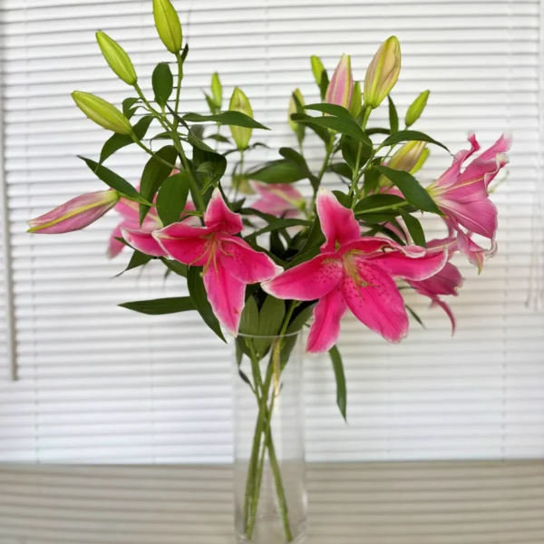 Para mantener tus flores frescas y hermosas por más tiempo, asegúrate de cortar los tallos y cambiar el agua regularmente. También es importante mantener tus flores alejadas de la luz solar directa y las corrientes de aire. Ofrecemos la posibilidad de añadir un prodcuto para que las flores luzcan mejor durante más tiempo en el último paso de la compra