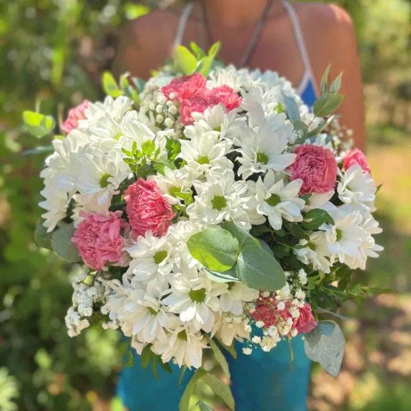 Seleccionar opciones Este producto tiene múltiples variantes. Las opciones se pueden elegir en la página de productoRamo de margaritas blancas y claveles rosas – Dulzura y frescura naturalValorado con 5.00 de 5Desde:34,99€27,99€