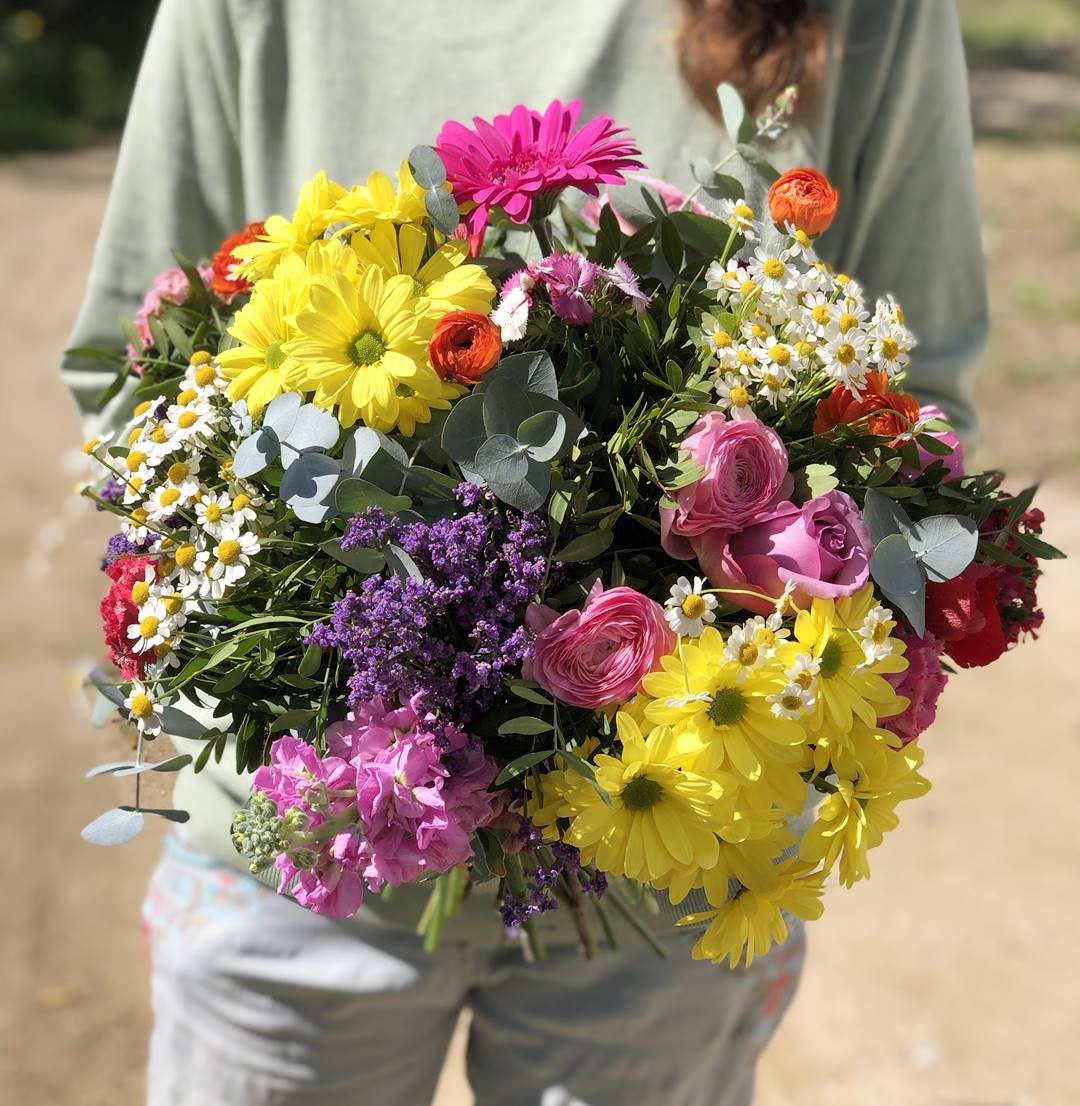 Compra este ramo de flores para entregar a domicilio lleno de color y buen rollo.