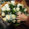 12 rosas blancas con paniculata, súper perfumadas. Utilizamos una variedad de rosas que hace que su fragancia sea inigualable. Si quieres regalar un ramo de rosas blancas que dure más de dos semanas e impacte a la persona que lo recibe este es tú ramo.