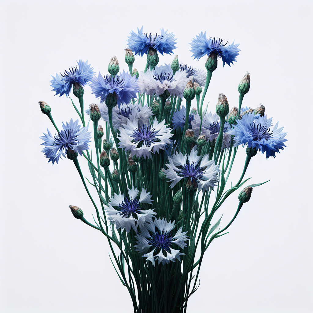 Ramo de flores de Centaurea cyanus, también conocida como aciano o centáurea azul. Perfecto para añadir un toque silvestre y colorido a cualquier espacio.