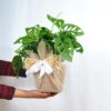 Tu planta llegará en una caja de cartón reciclado, en la que encontrarás la dedicatoria, la planta y una tarjeta con trucos para su cuidado.