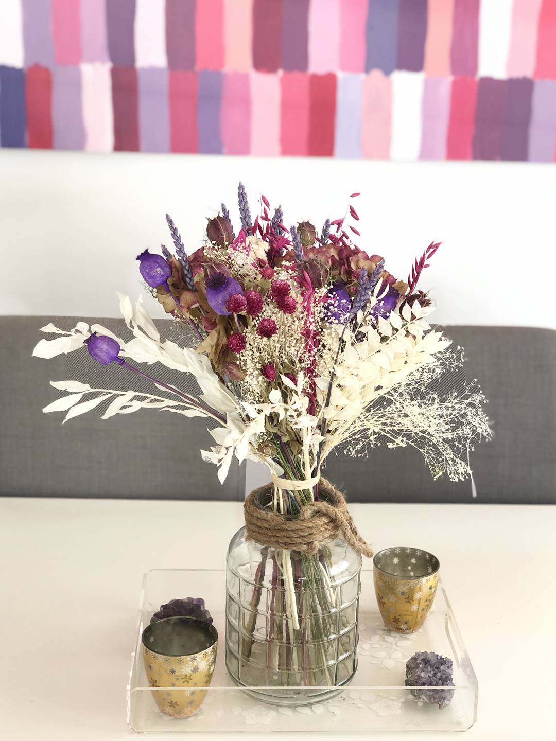 Las flores secas son un elemento decorativo que va a dar muchísimo color a nuestro hogar. Este tipo de flores requieren poquísimos cuidados y son muy resultonas. Además, se mantienen durante aproximadamente 2 años en perfectas condiciones. Decorar con flores secas es sinónimo de alguien a quien le gusta la naturaleza y los detalles. Mimar cada rincón de tu casa aportando estilo y personalidad.
