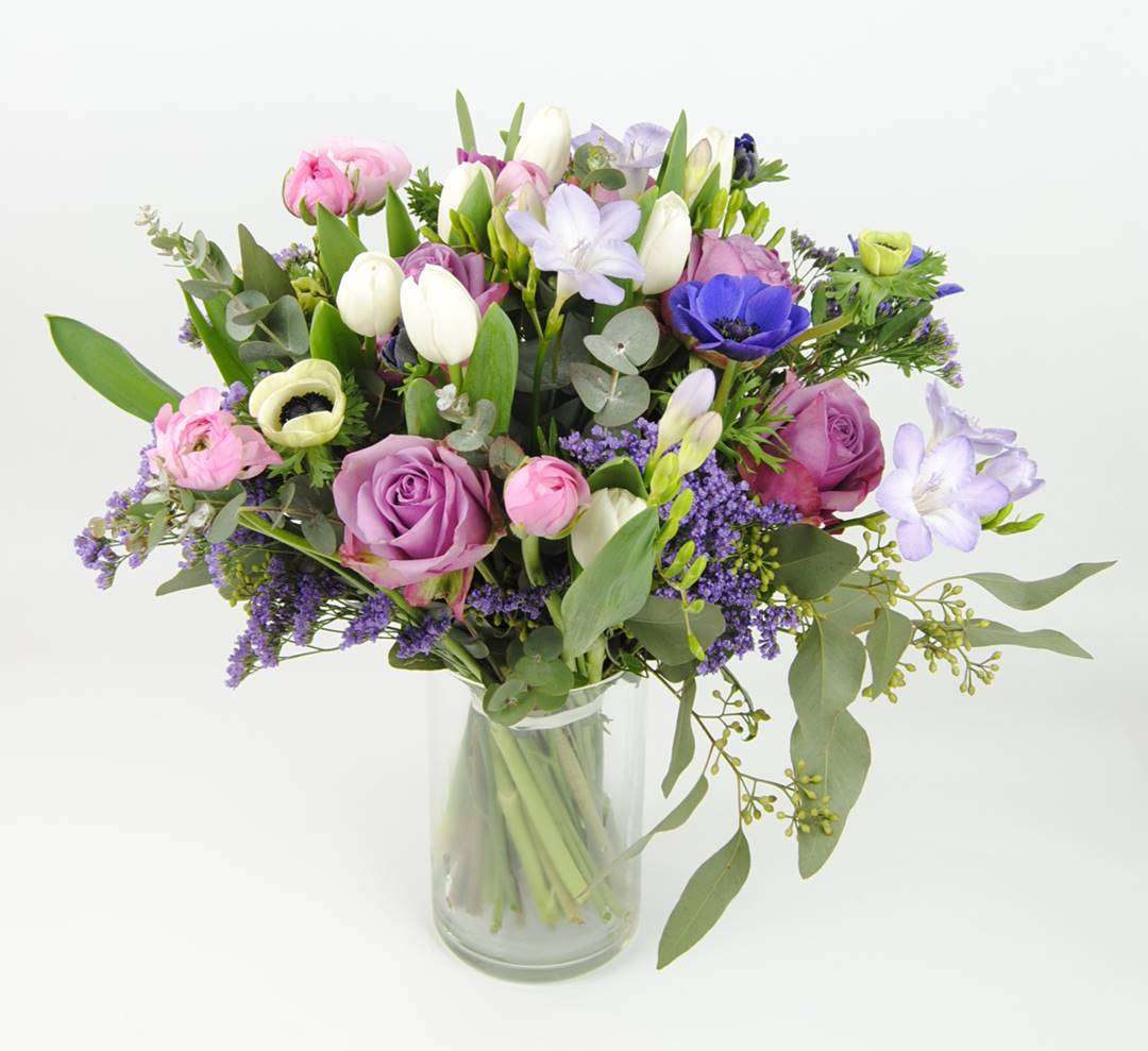 Ramo para enamorar, un ramo como la pelicula, con destellos azules, blancos y malvas. Una preciosidad con rosas lilas, fresia, tulipanes, anemonas. Si quieres impactar alguien muy querid@ este es tú ramo, sin pensarlo, además lo tendrá intacto durante más de dos semanas.