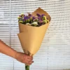 Tu ramo te llegará en una caja de cartón reciclado, en la que encontrarás la dedicatoria, las flores frescas, una tarjeta con trucos para su cuidado y una bolsita de nutrientes para que tu ramo dure mucho más.
