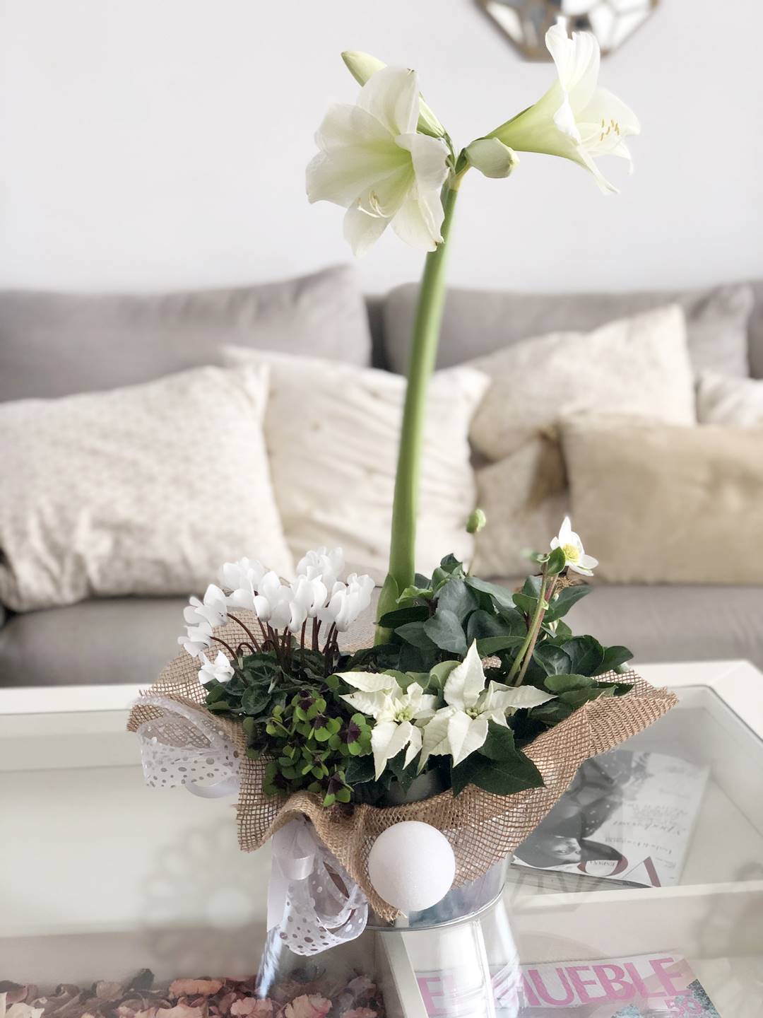 Además, el Amarilis y el Helleburus, también conocido como Rosa de Navidad, complementan el conjunto con su belleza y sofisticación. Es importante destacar que los Amarillis se entregan cerrados para garantizar su frescura y calidad, permitiendo a quien lo reciba disfrutar de su floración completa en casa.