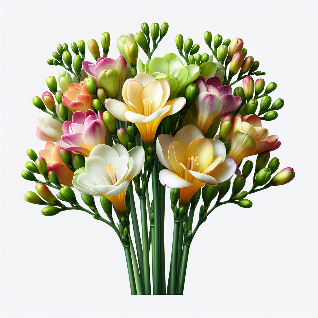 Ramo de flores de Fresia FD Essence: ¡Agrega un toque de elegancia y frescura a tu hogar con este hermoso ramo de fresias de la mejor calidad!