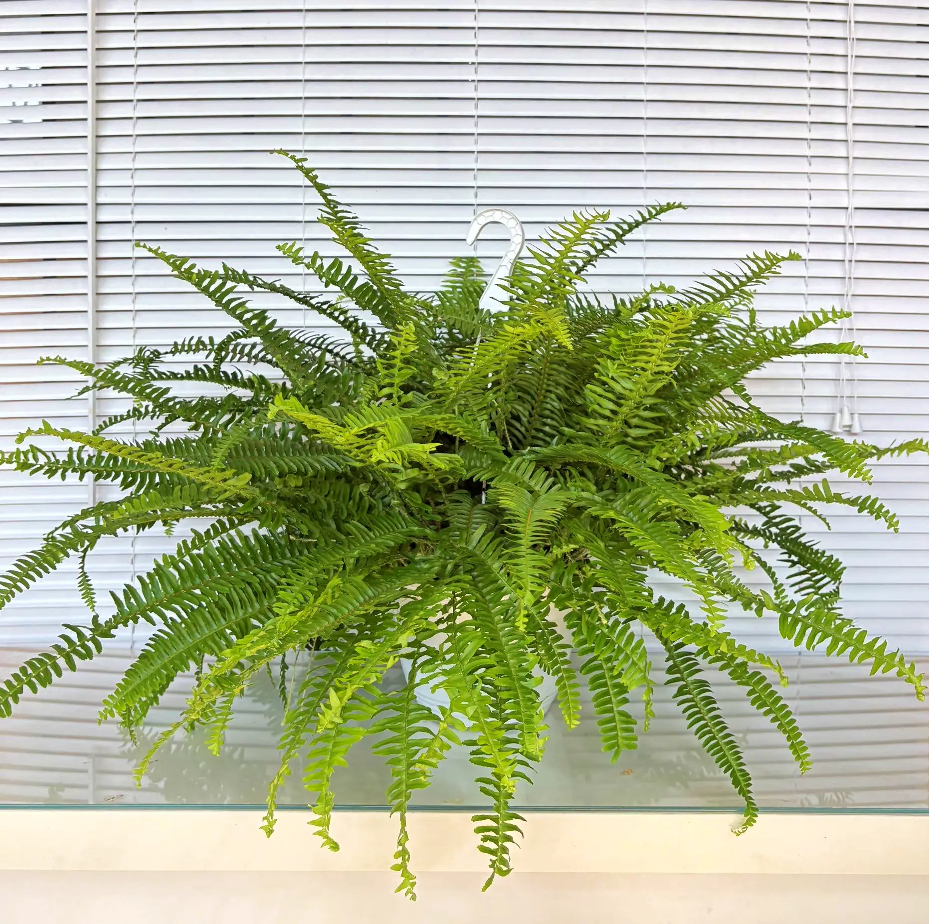 El clásico Helecho de Boston es una de las plantas de interior más elegantes y purificadoras. Sus frondes largos, arqueados y de un verde intenso aportan frescura, vida y un toque natural a cualquier espacio. Perfecto para decorar salones, oficinas, terrazas cubiertas o recibidores.