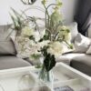 3. Hortensiass Monocromáticos: Las Hortensias en tonos suaves y monocromáticos, como el blanco o el crema, se combinan perfectamente con el concepto minimalista. Su simplicidad y elegancia se integran de manera armoniosa en el ramo.