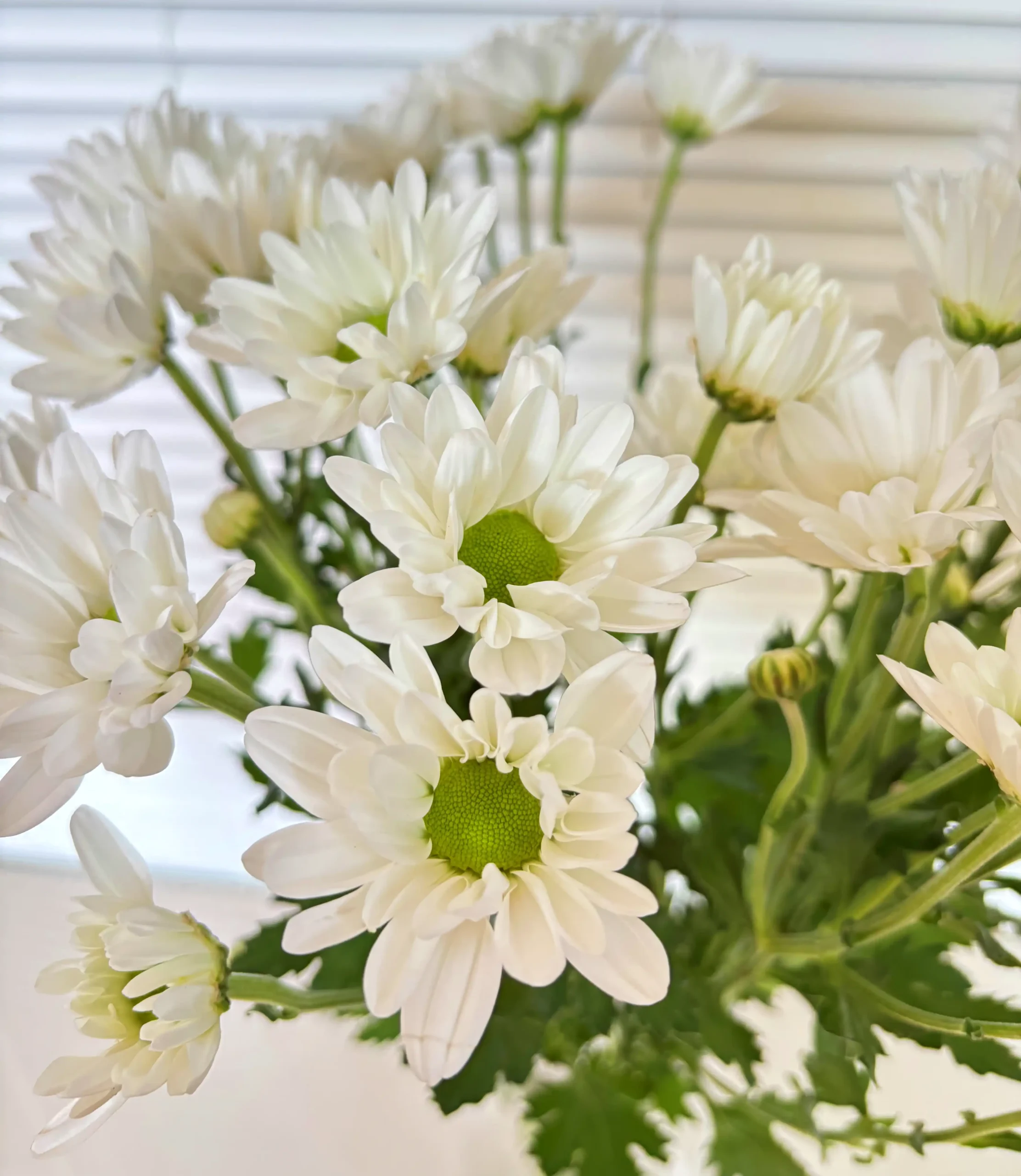- Margaritas blancas frescas, perfectas para dar luz y alegría a cualquier ramo.