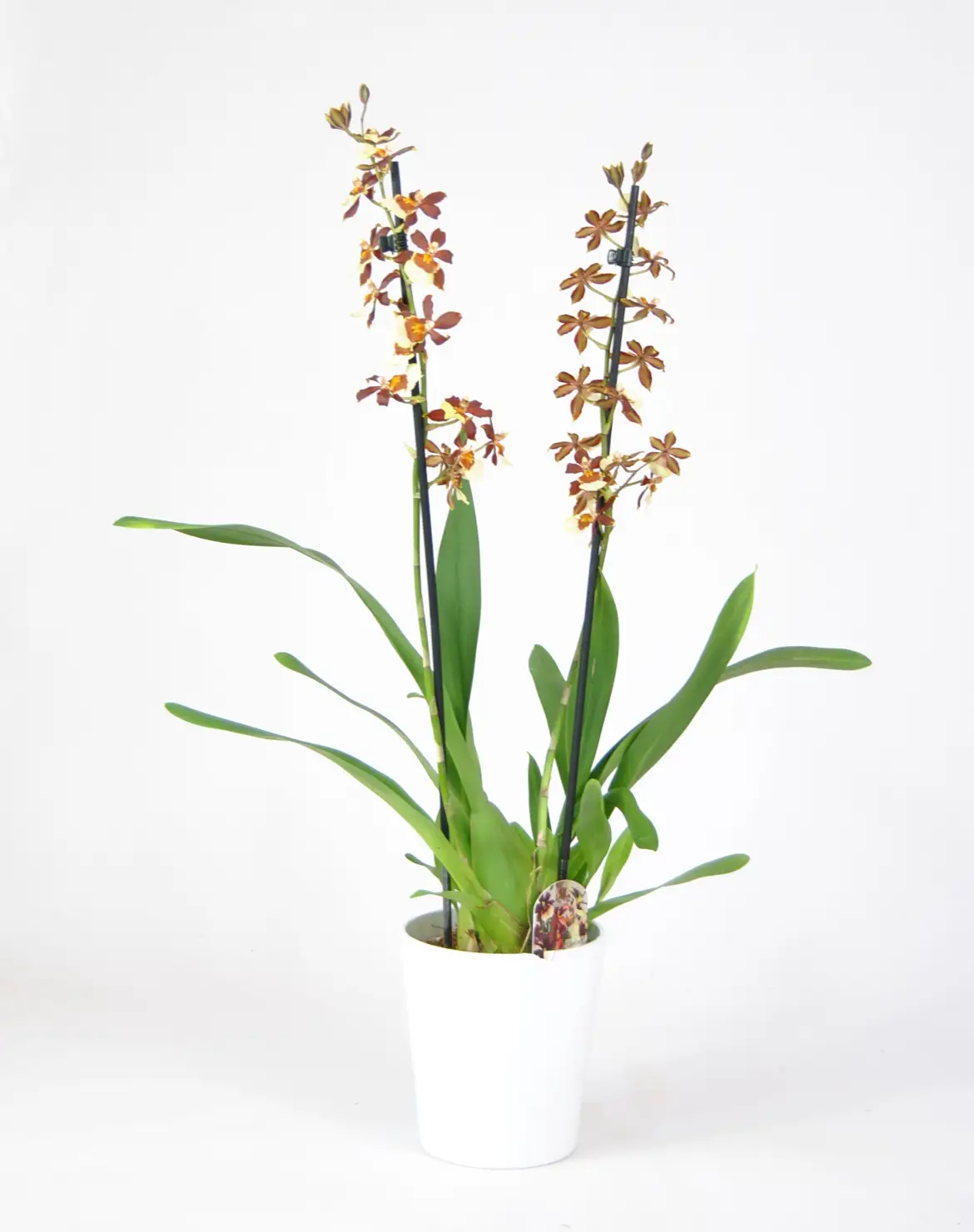 Aporta un toque sofisticado y diferente a tu hogar con la orquídea Cambria, una planta exótica de flores elegantes y duraderas. Incluye macetero decorativo, lista para colocar.