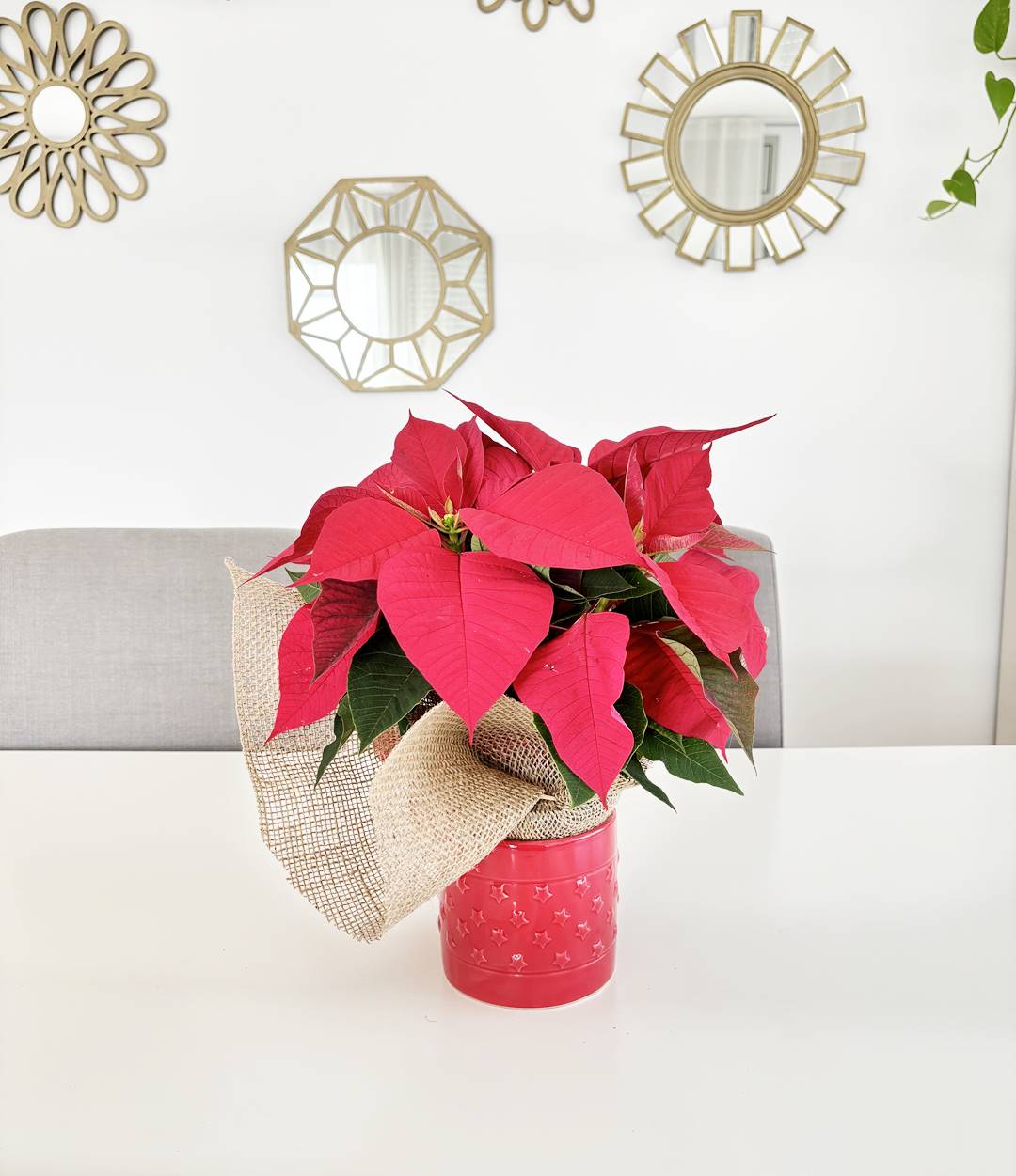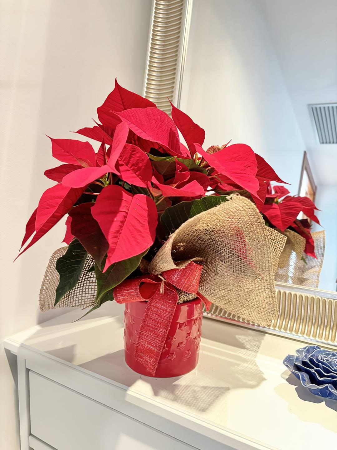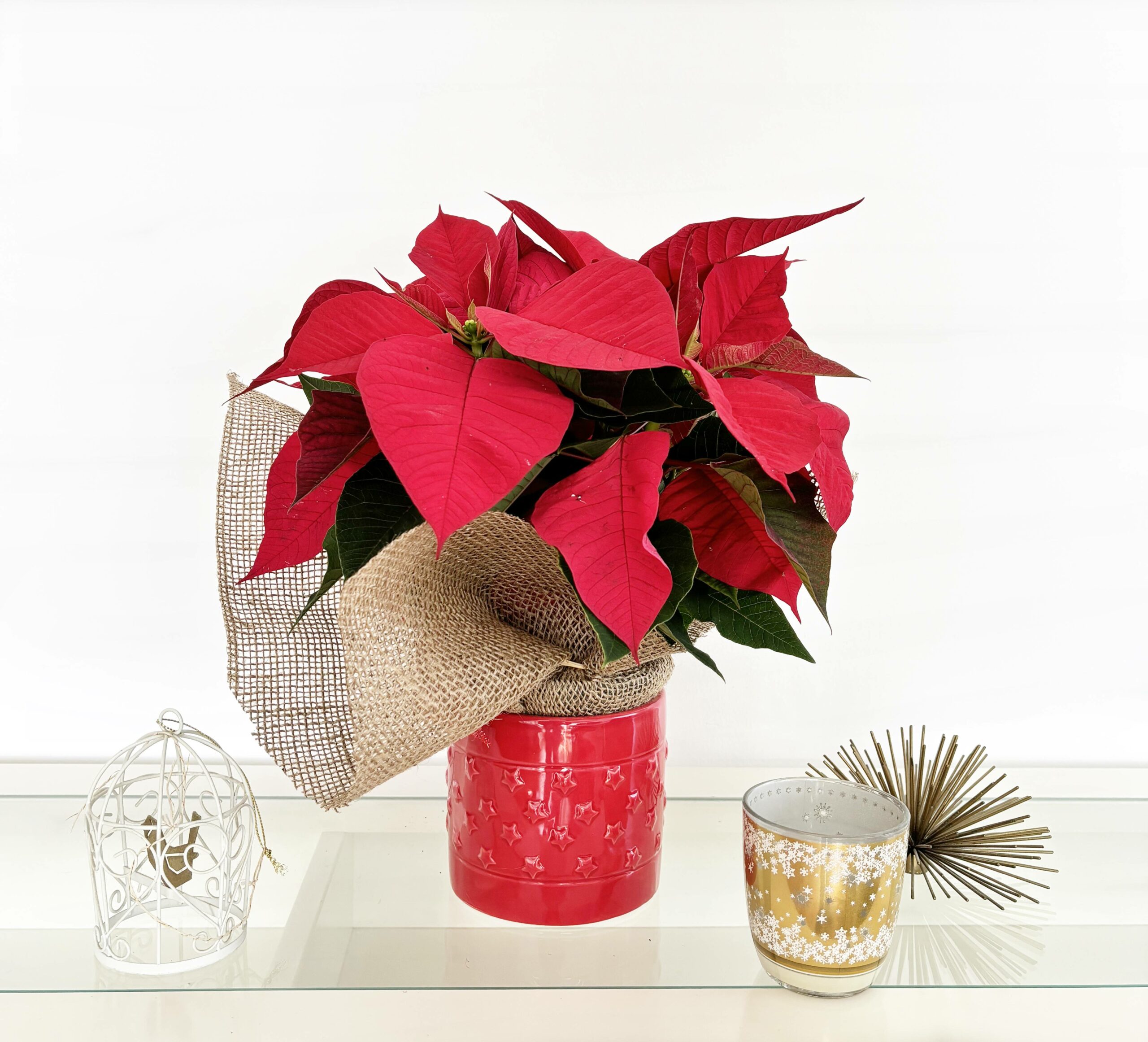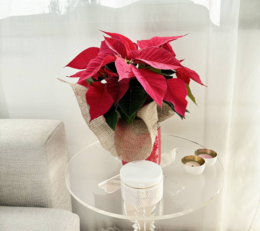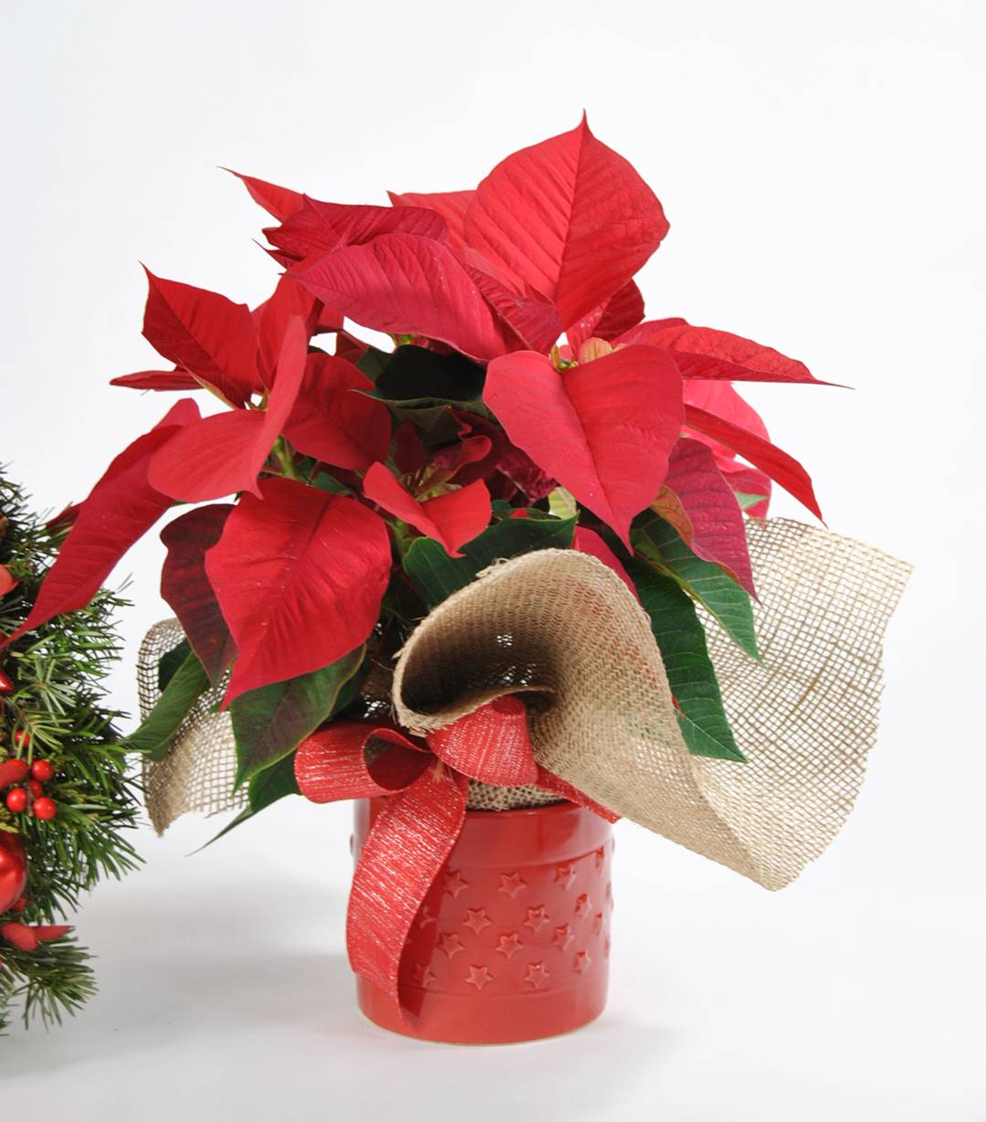 1 ponsetia roja (con macetero de cerámica)