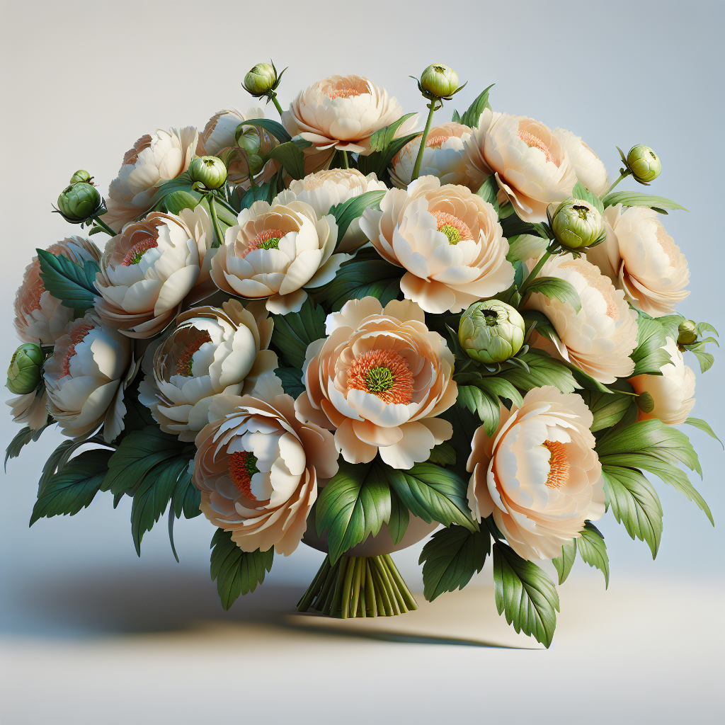 Ramo de flores de Paeonia L Bowl of Cream, una variedad de peonía con delicados pétalos blancos crema. ¡Añade un toque elegante y sofisticado a cualquier espacio!