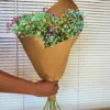 Tu ramo te llegará en una caja de cartón reciclado, en la que encontrarás la dedicatoria, las flores frescas, una tarjeta con trucos para su cuidado y una bolsita de nutrientes para que tu ramo dure mucho más.