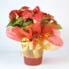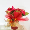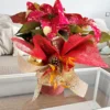 Su toque distintivo es la maceta de esparto natural, un acabado artesanal que aporta textura, calidez y un estilo rústico–elegante perfecto para decoraciones modernas, mediterráneas, nórdicas o tradicionales. La combinación entre el rojo vibrante de la planta y el tono natural del esparto crea un equilibrio visual que encaja en cualquier ambiente festivo.