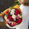 Como la película, este es un ramo romántico y elegante a la vez. Hemos hecho este bouquet con rosas pitimini y rosas extra grandes para impactar a la persona que lo reciba. Los colores malvas, rosas, lilas y el rojo hacen destacar a un ramo que por sí solo es espectacular.